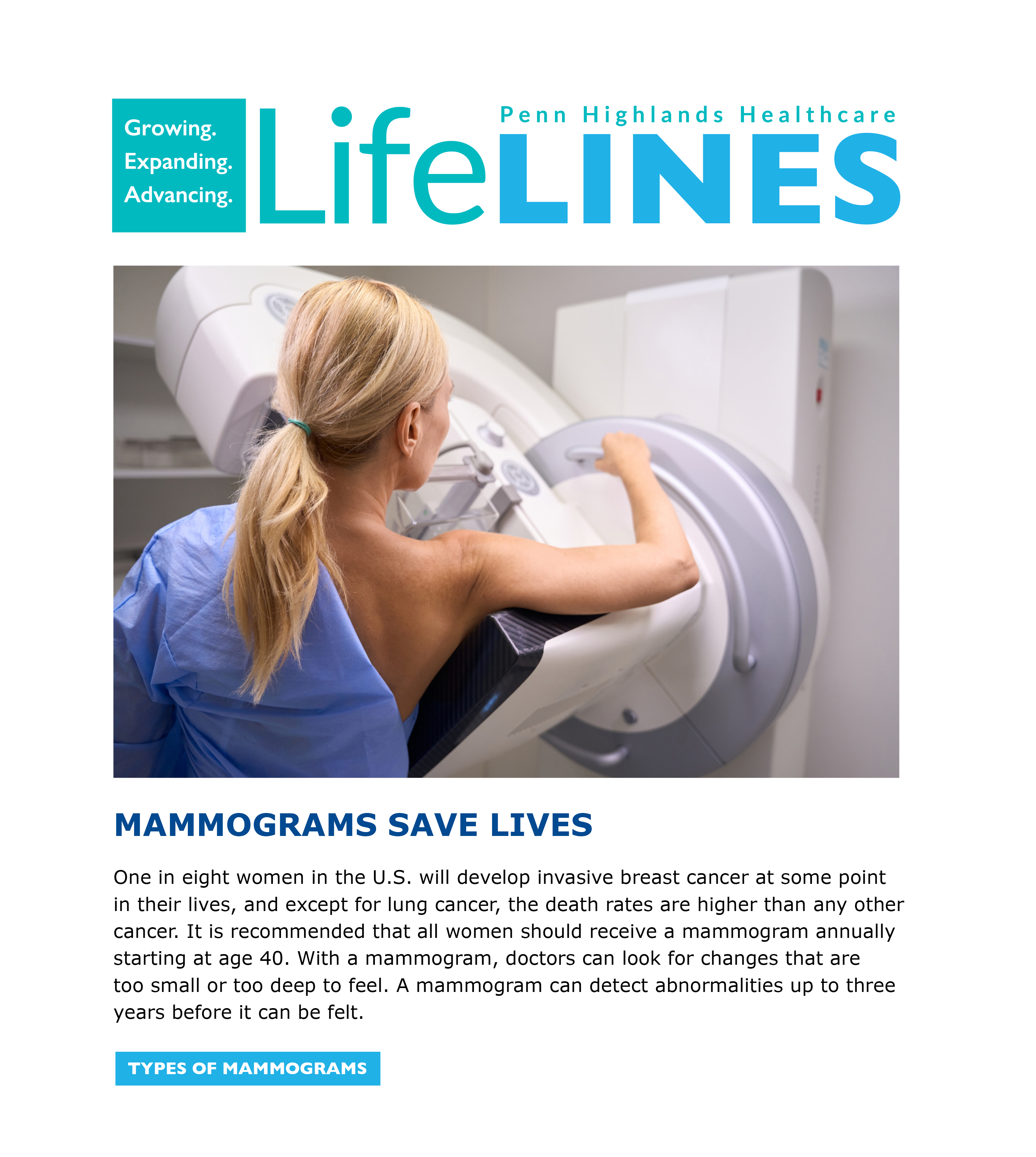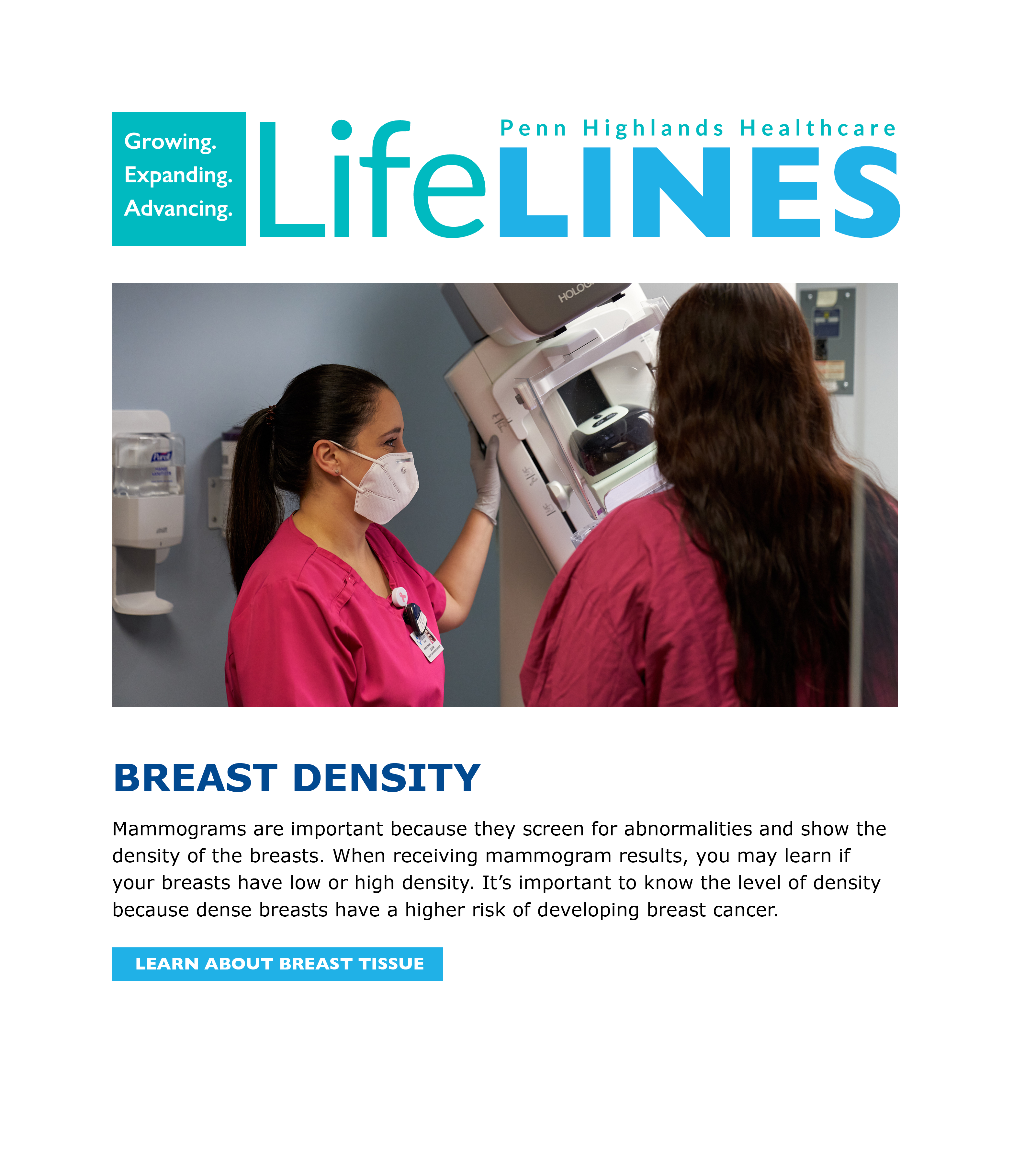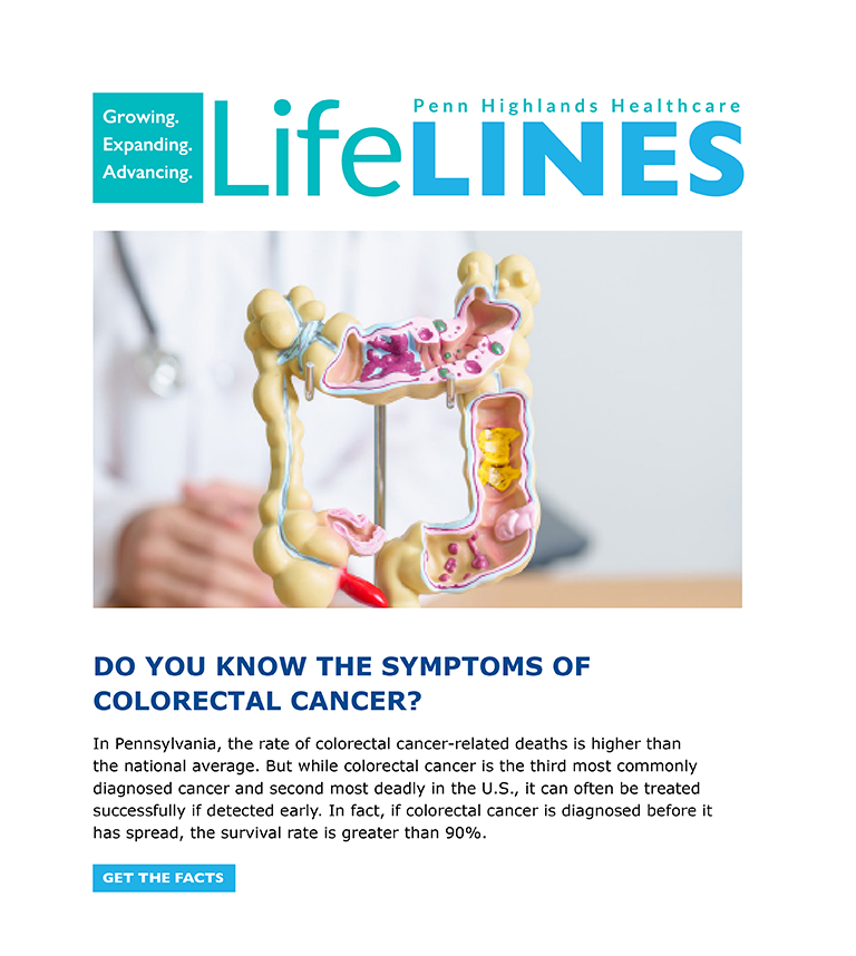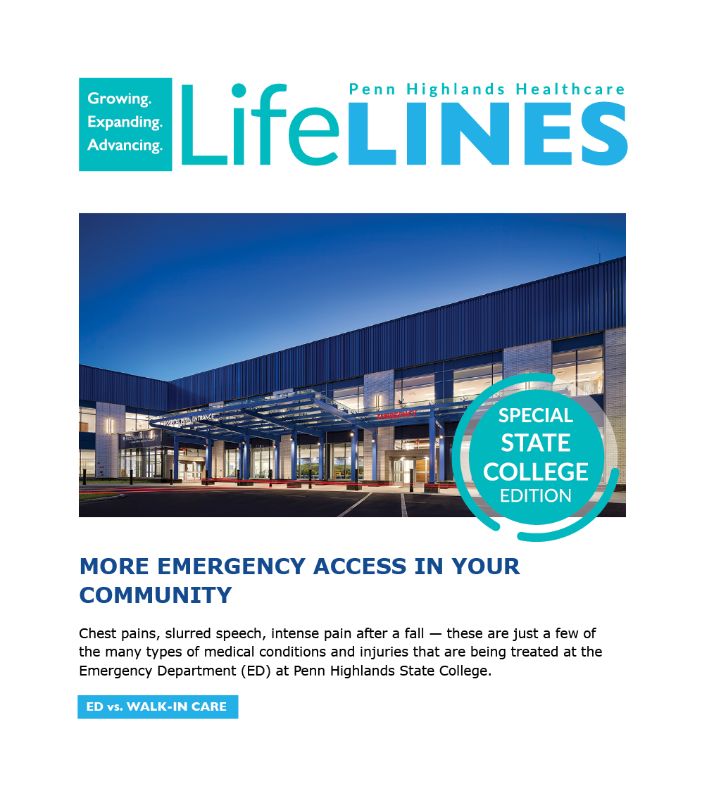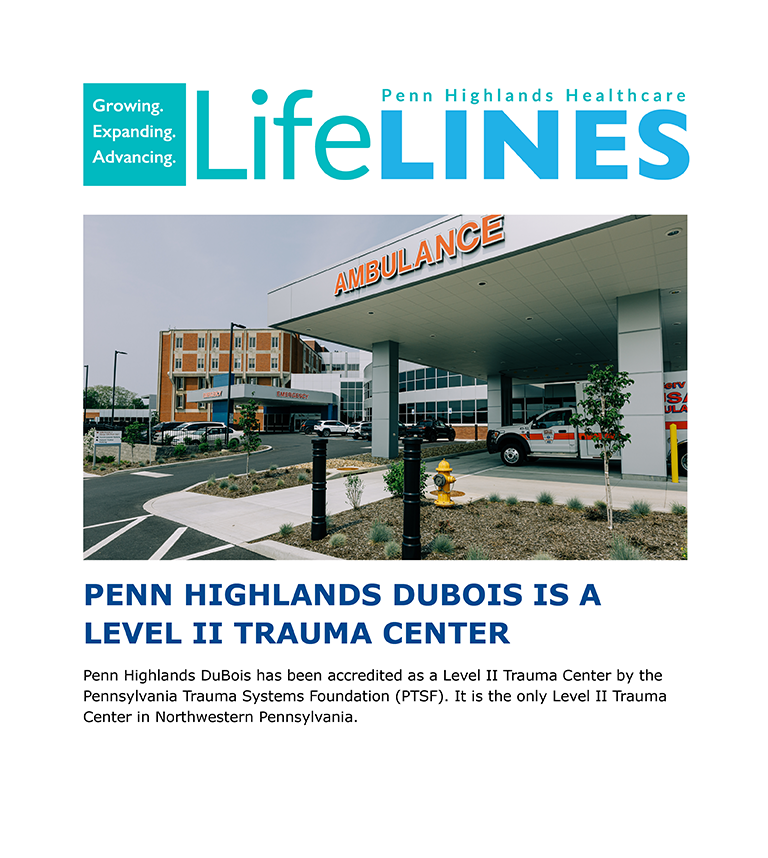 Penn Highlands LifeLines Newsletter gives you the most up-to-date news about services throughout Penn Highlands. LifeLines helps you navigate healthcare and easily understand all of the tools available to help you lead a healthier life.