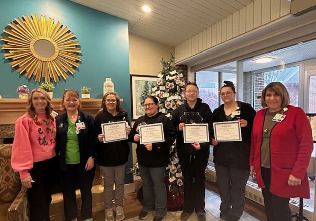 At Penn Highlands Elk Pinecrest Manor Sherry Tipton, Brandi Mecusker, Gweneth Erickson and Brittany Green successfully completed the CNA course.