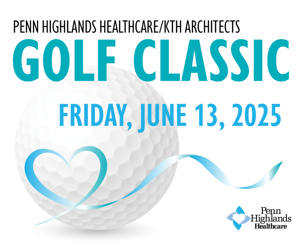 Get your clubs ready! The Penn Highlands Healthcare/KTH Architects Golf Classic will be held on Friday, June 13, 2025, at golf courses in Northwestern, Central and Southwestern Pennsylvania. Golfers will register at 8:00 AM and tee off in a scramble format at 9:00 AM at the American Legion Country Club; Treasure Lake Silver and Gold courses; and Pleasant Valley Golf Club.