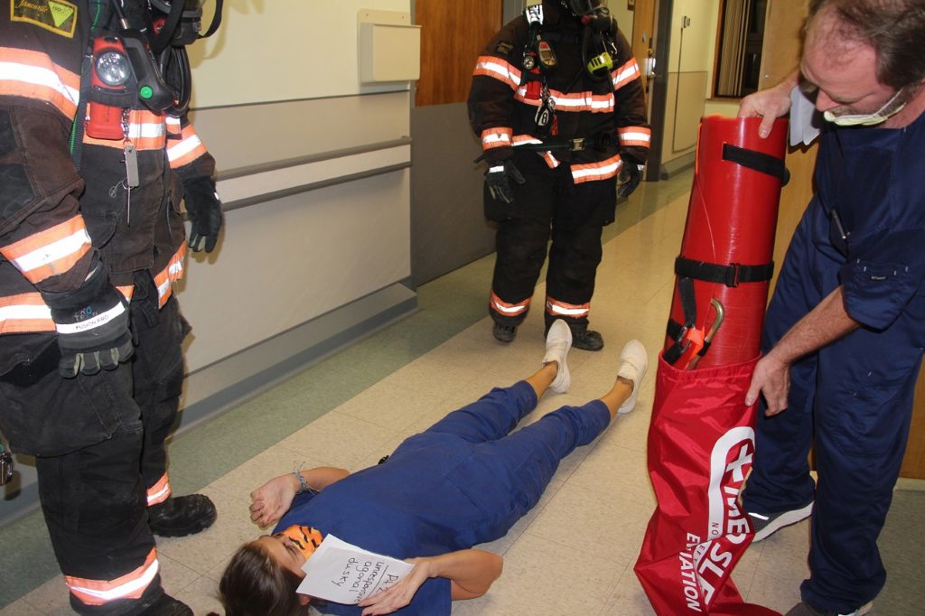 With staff playing the role of patients during the drill, the fire alarm was activated and 9-1-1 was contacted. The hospital staff followed policies and procedures — particularly the evacuation plan — to move patients to safety while the fire crews acted to distinguish the fire. Some “patients” were taken to the Emergency Department for diagnosis, treatment or transfer.