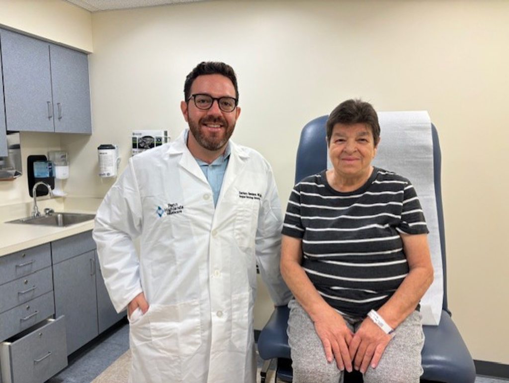 The Charleroi resident was first diagnosed with lung cancer in 2021. She received chemotherapy and radiation therapy at the hospital’s cancer center and lived cancer free for three and one half years. When she returned to Penn Highlands Hahne Cancer Center on the hospital’s Carroll Township campus for a CT scan earlier this year, a mark was detected on her liver. A biopsy revealed that it was cancerous and her oncologist, Rodney Jamil, MD, referred her to Zachary Senders, MD, a double-board-certified surgical oncologist and general surgeon with Penn Highlands Oncologic and General Surgery. In early August 2024, Dr. Senders performed a microwave ablation on Debra’s liver.